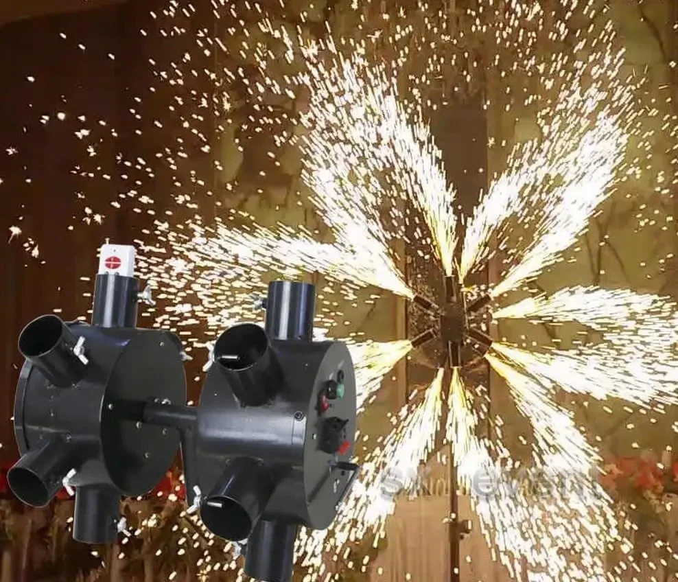 nouveau système de moulin à vent qui vous permettra de manipuler entre 1 et 12 jets de scène séparément ou simultanément. Avec cet accessoire en métal de deux roues, vous disposez d'un système de rotation pour lancer les gerbes d'étincelles en rosaces ou en forme de fleurs. Grâce à son fonctionnement simple, il est facile à utiliser et dispose d'une télécommande pour une meilleure manipulation à distance de vos artifices. Vous pourrez ainsi sublimer des événements tels qu'un anniversaire, un mariage, un baptême, etc.